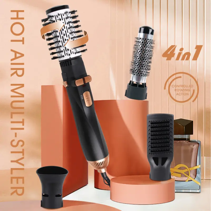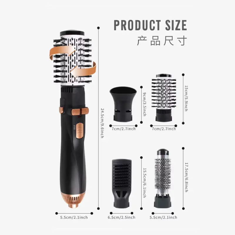 يأتي المنتج مع رؤوس مختلفة قابلة للتبديل، وعادة ما تتضمن فرشاة حرارية، فرشاة خشنة، نصف فرشاة، ورأس مكثف * تصميم مريح وخفيف الوزن مع سلك دوار 360