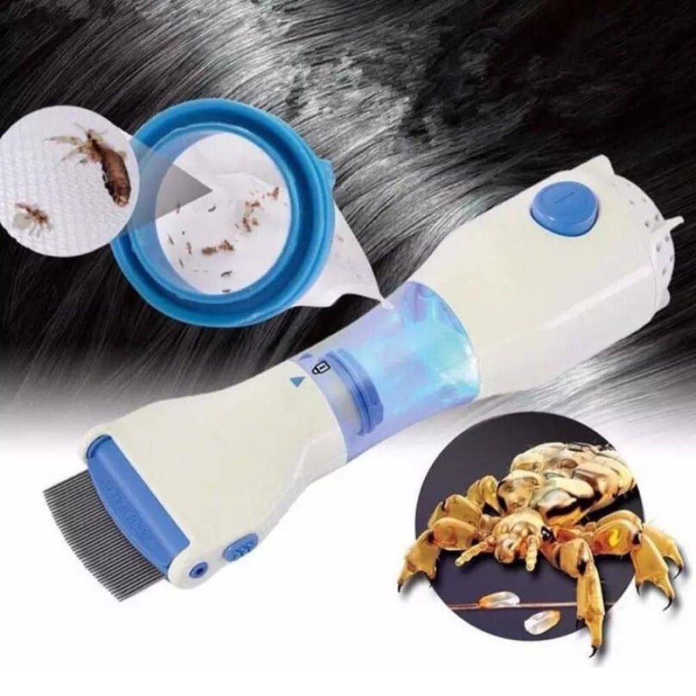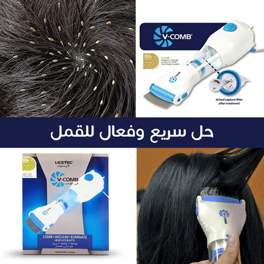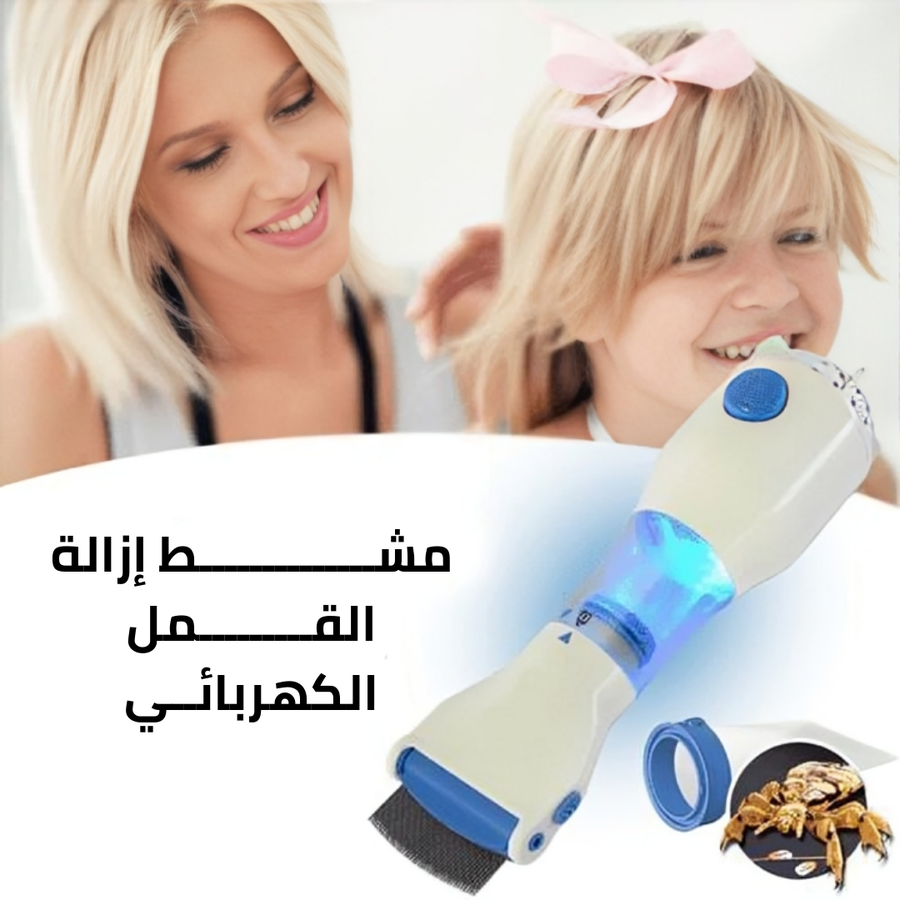 مشط إزالة القمل الكهربائي هو جهاز صغير محمول يشبه المشط العادي، لكنه مزوّد بأسنان معدنية دقيقة ونظام شفط داخلي يقوم بسحب القمل وبيضه إلى فلتر خاص داخل الجهاز أثناء التمشيط.